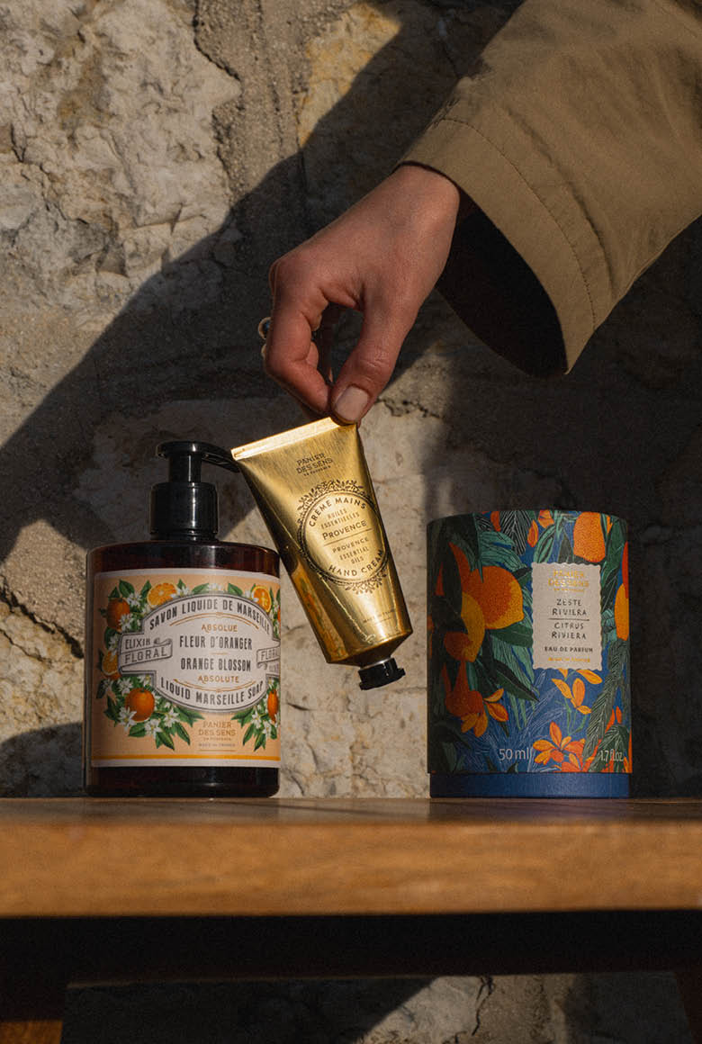 Panier des Sens steht für Kosmetika, die von mediterranen Inhaltsstoffen inspiriert sind und in Frankreich hergestellt werden.