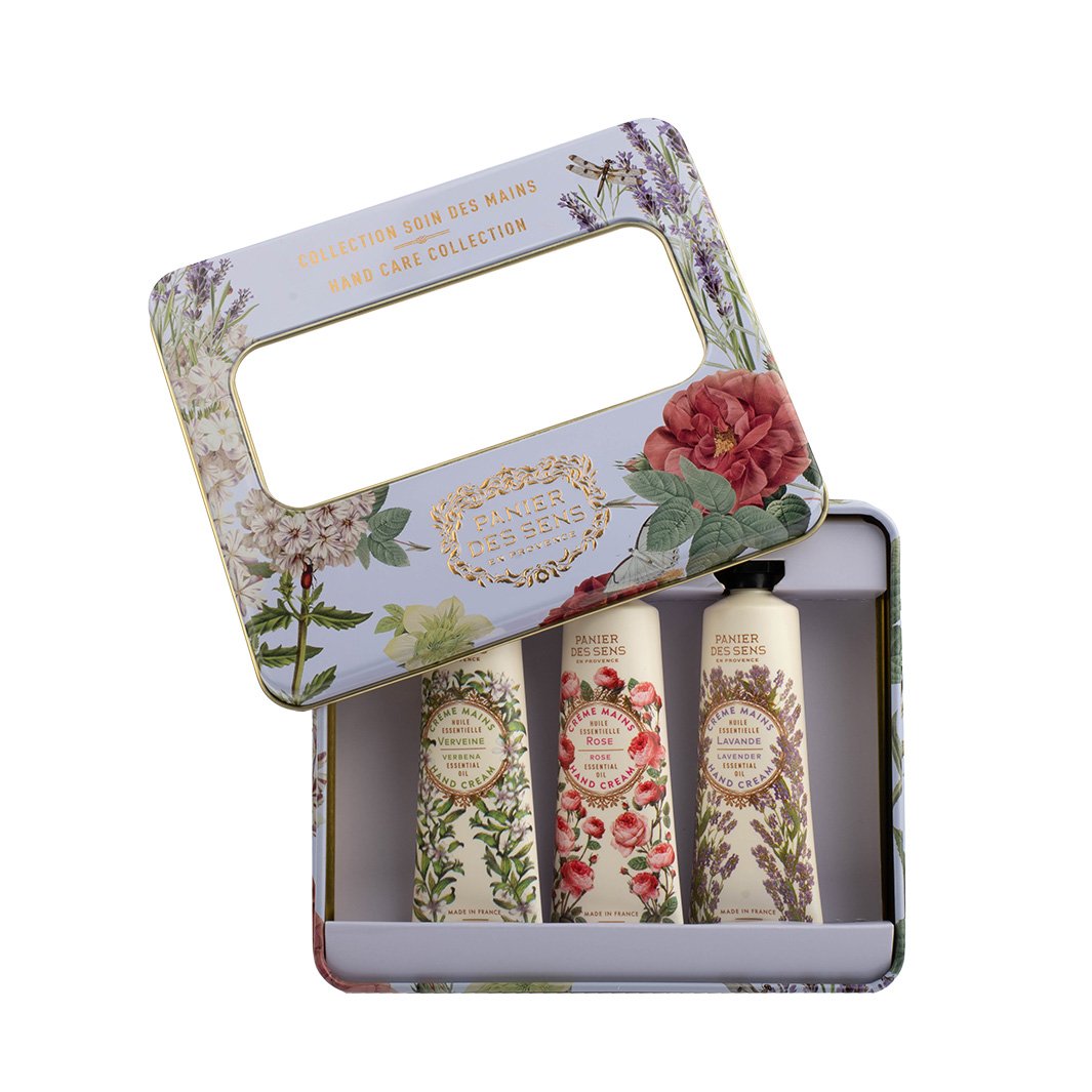 ROSE HAND CREAM : AQUA (WATER)/EAU, BUTYROSPERMUM PARKII (SHEA) BUTTER, GLYCERIN, GLYCERYL STEARATE CITRATE, CETEARYL ALCOHOL, OLEA EUROPAEA (OLIVE) FRUIT OIL, ROSA DAMASCENA (ROSE) FLOWER OIL, PARFUM (FRAGRANCE), C15-19 ALKANE, CETYL RICINOLEATE, TALC, XANTHAN GUM, SODIUM BENZOATE, SQUALANE, POTASSIUM SORBATE, ALLANTOIN, TOCOPHEROL, CITRIC ACID, SORBITAN ISOSTEARATE, SODIUM HYDROXIDE, CETEARETH-33, HYDROXYETHYL ACRYLATE/SODIUM ACRYLOYLDIMETHYL TAURATE COPOLYMER, POLYSORBATE 60, GERANIOL.