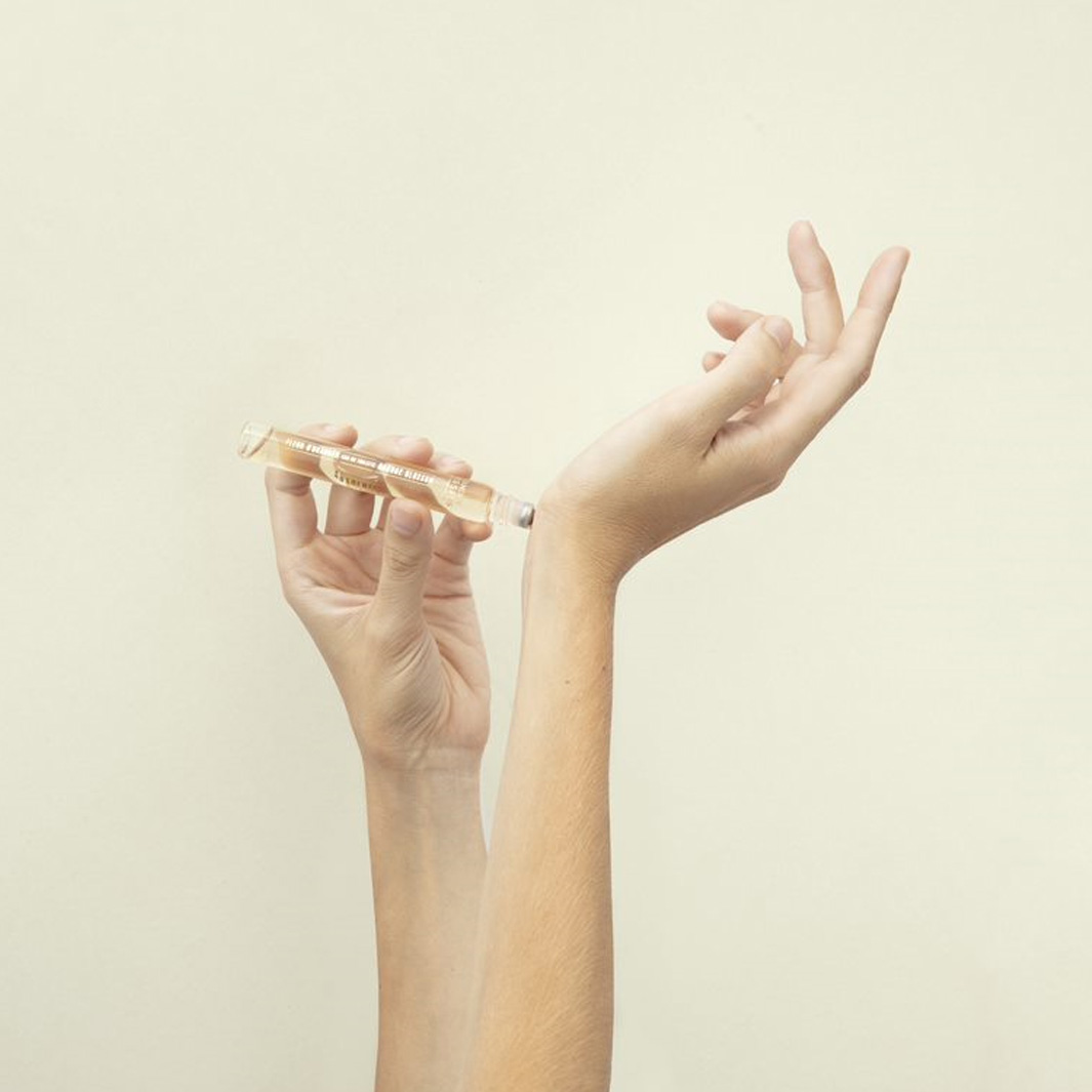 Slide the ball onto pulse points: neck, décolleté, wrists, behind the ears.