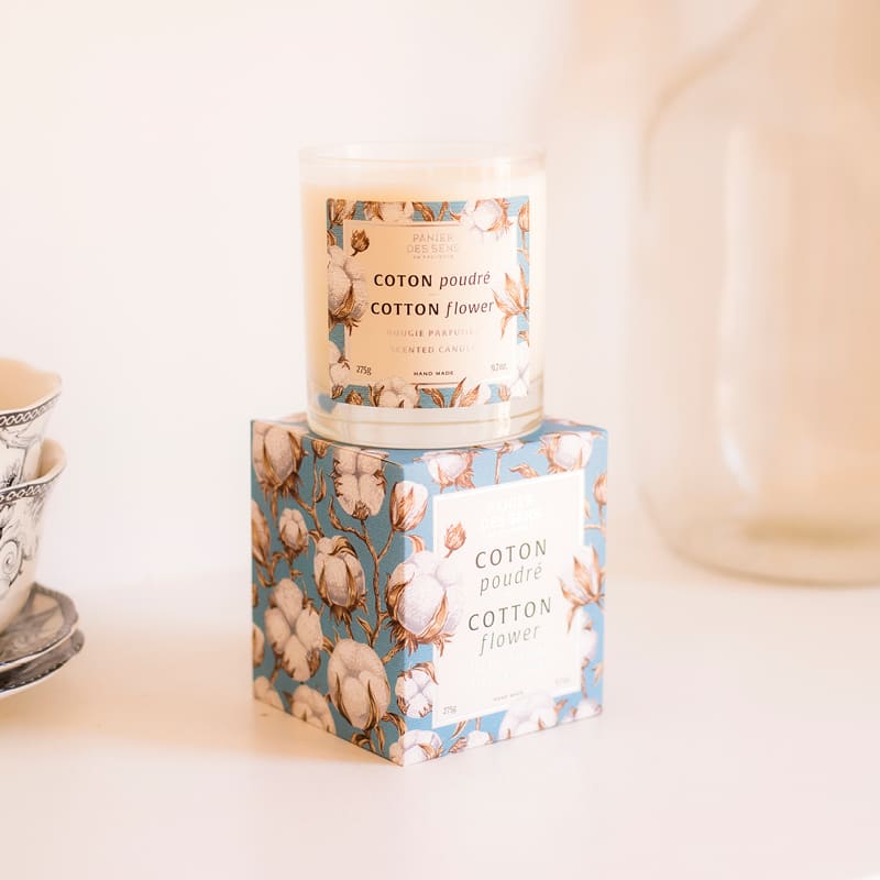 We use 100% vegetable wax for the Cotton Flower scented candle. This wax is selected for its combustion and diffusion qualities: it reveals the Cotton Flower notes with precision.