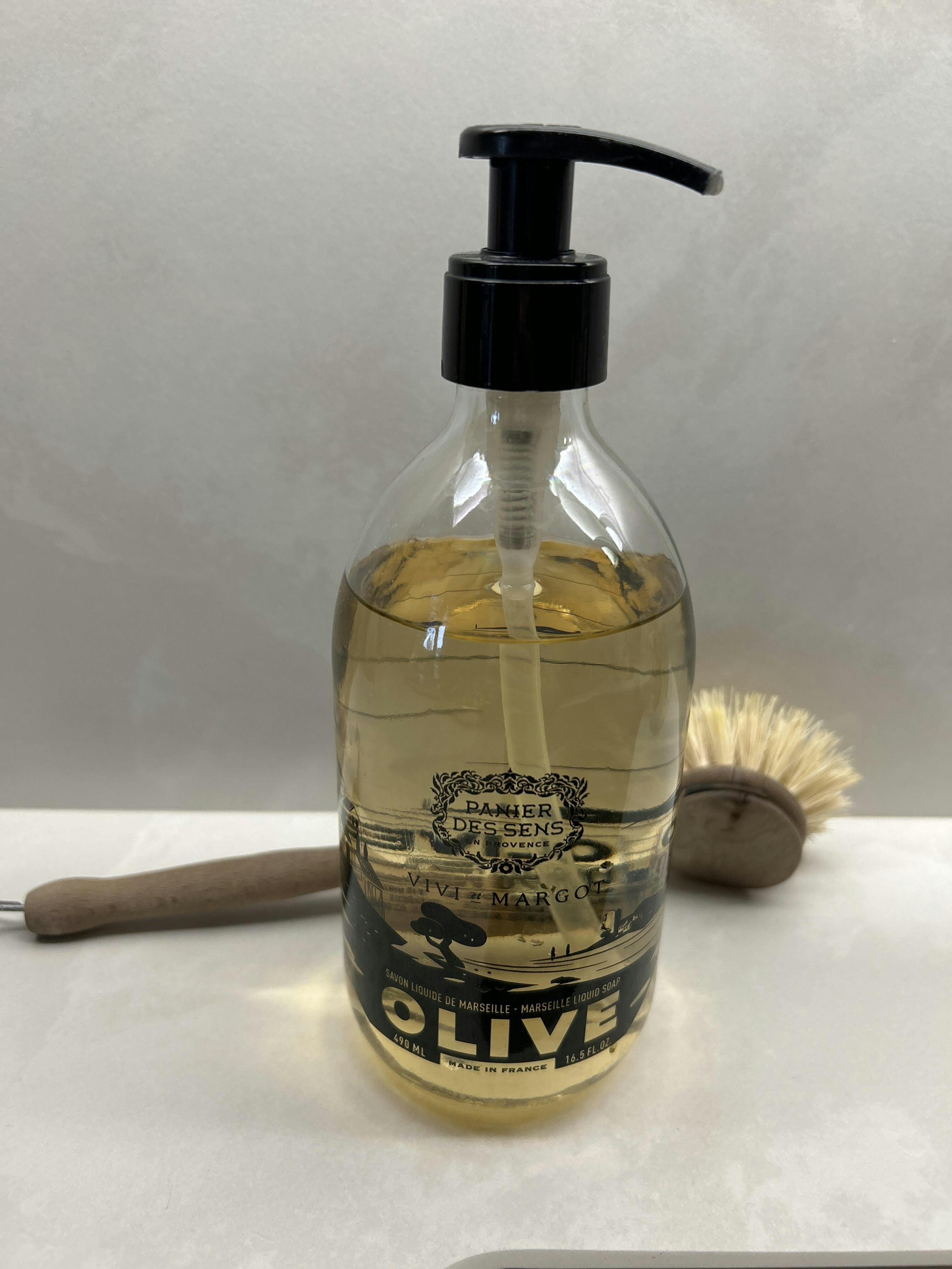 Thanks to its refillable glass bottle, Liquid Marseille Soap is easy to measure out and use.