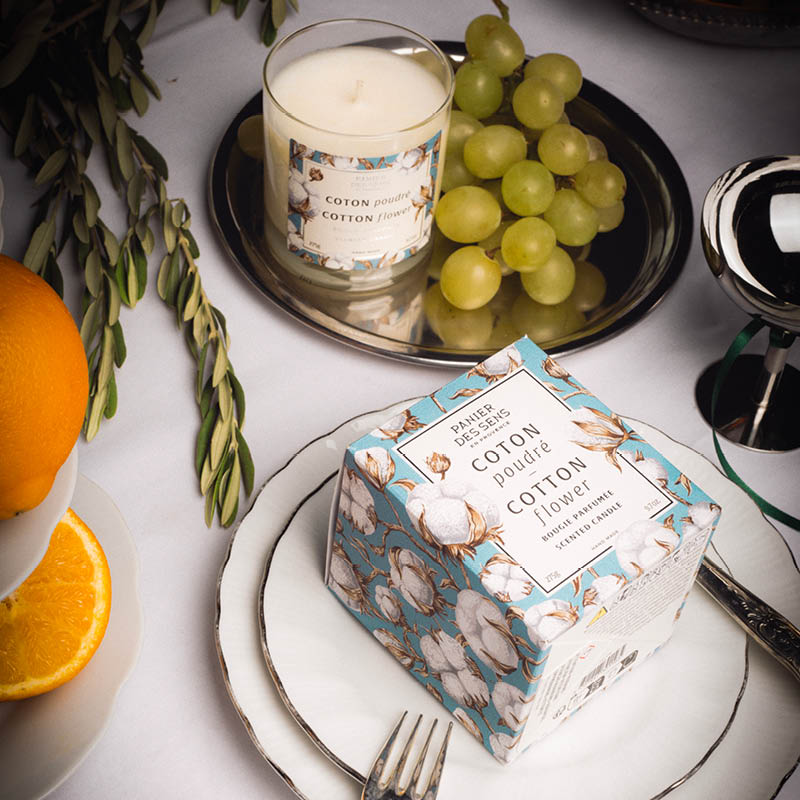 La confezione di questa candela artigianale è altrettanto elaborata quanto la sua fragranza. Una candela originale, bella e delicata, progettata e decorata in Francia dai nostri team. Vestita con incisioni di rami e fiori di cotone, il suo design luminoso e la sua sensazione di "tessuto" incarnano una Provenza gioiosa, elegante e colorata. Collocata in salotto, la candela diventa un vero e proprio oggetto di design ed eleganza. Una volta svuotato, il barattolo di vetro della candela può essere riutilizzato per riporre gioielli, puntine, spille, matite, pennelli per il trucco o anche dischetti struccanti. I vostri oggetti saranno splendidamente esposti e più facilmente accessibili!